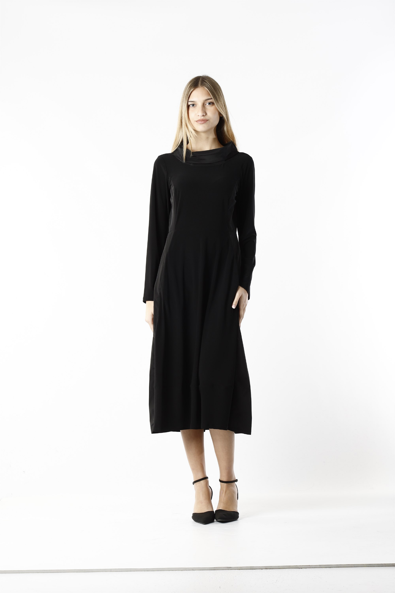 • abito lungo collo jersey e tafta