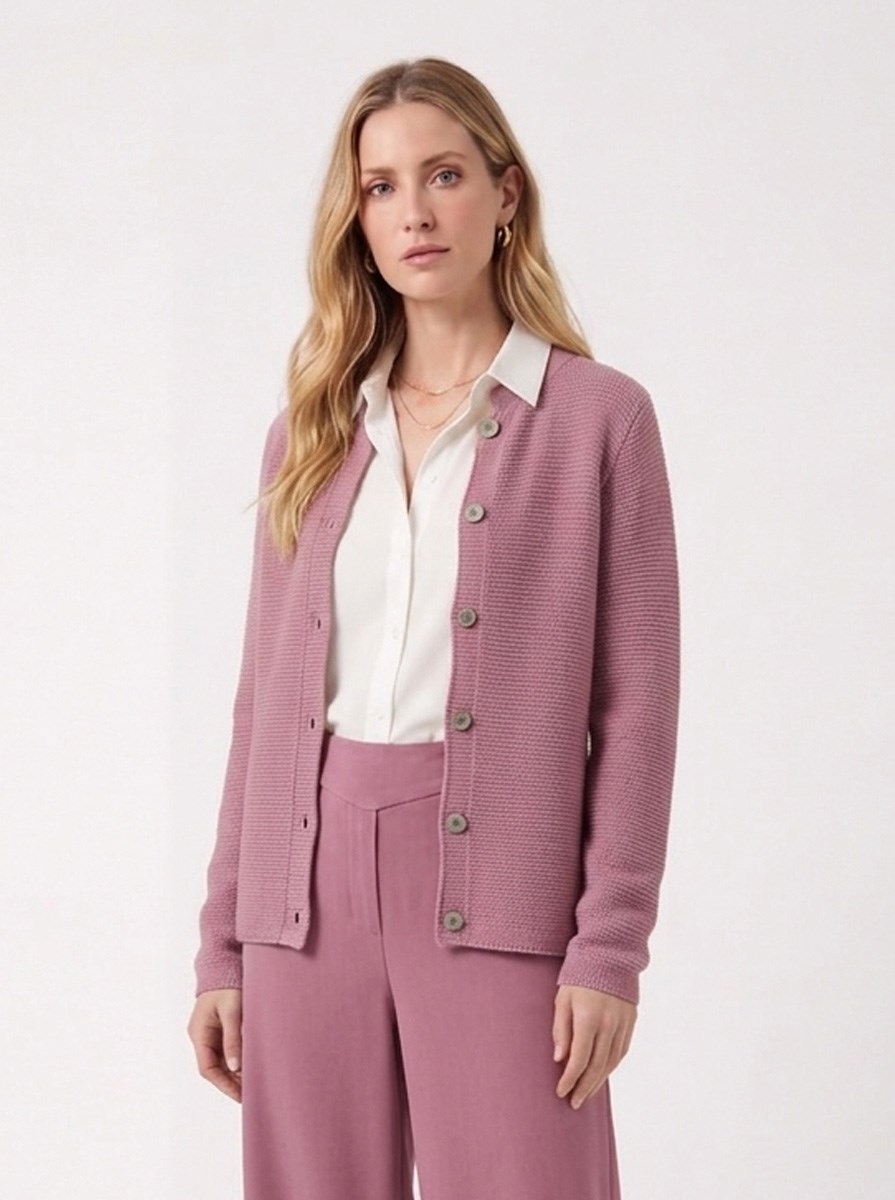 Cardigan punto riso con borroni