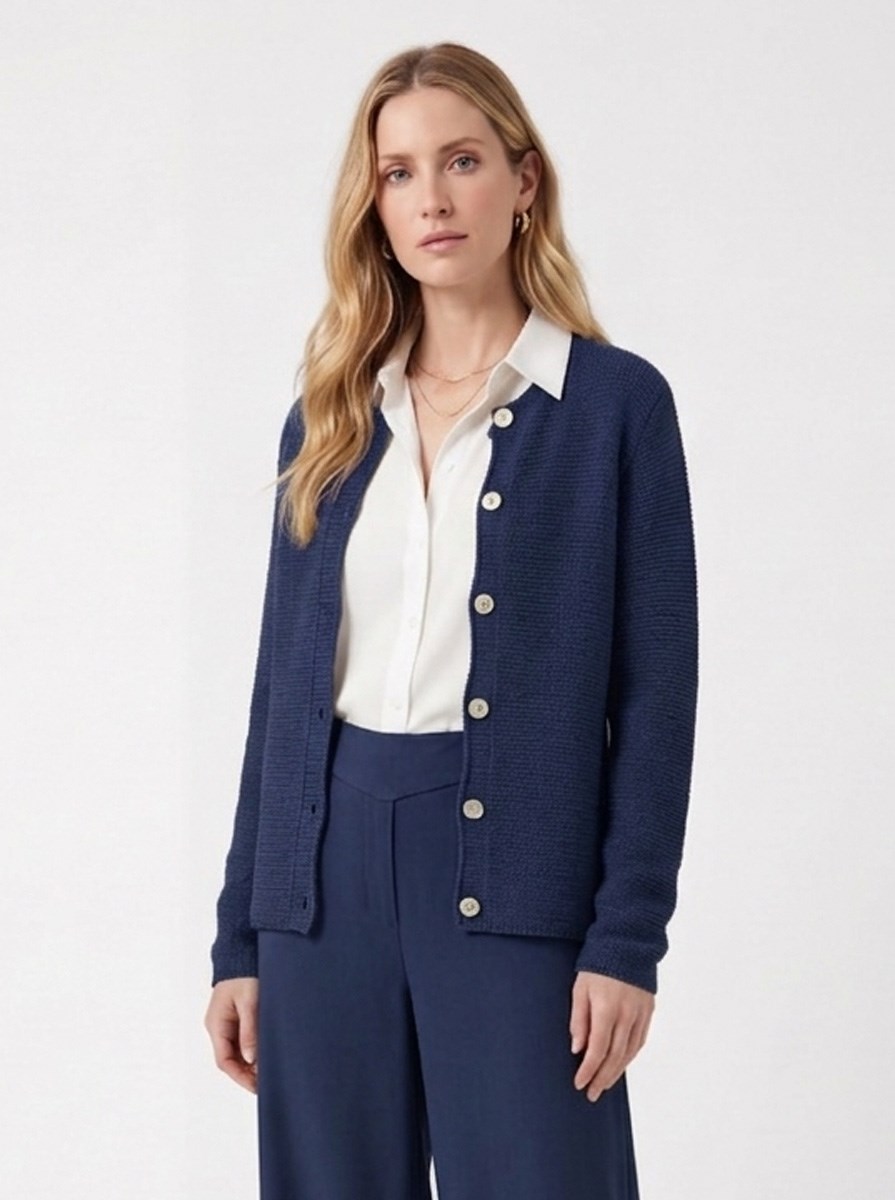 Cardigan punto riso con borroni