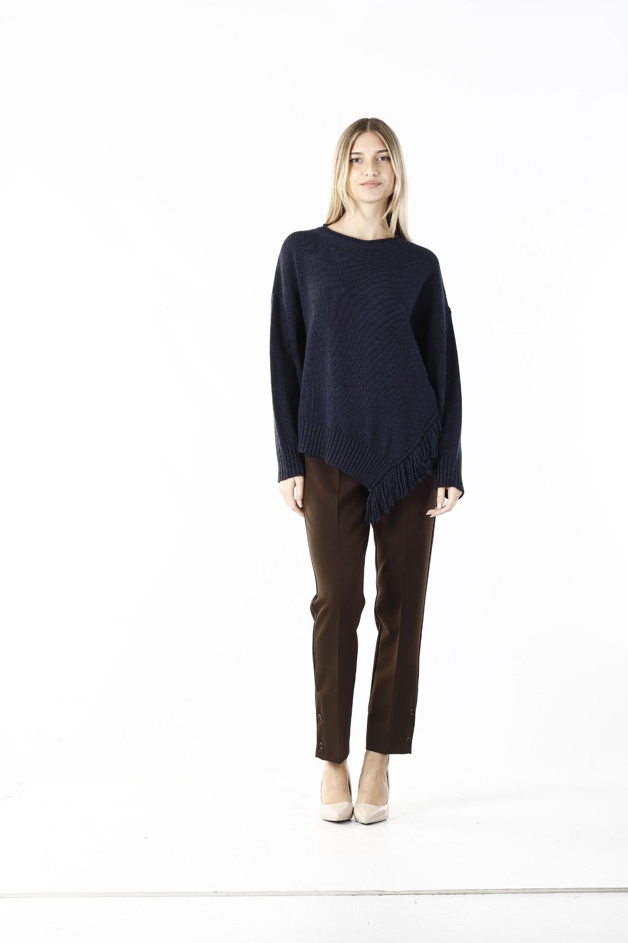 maglia girocollo con frange laterali