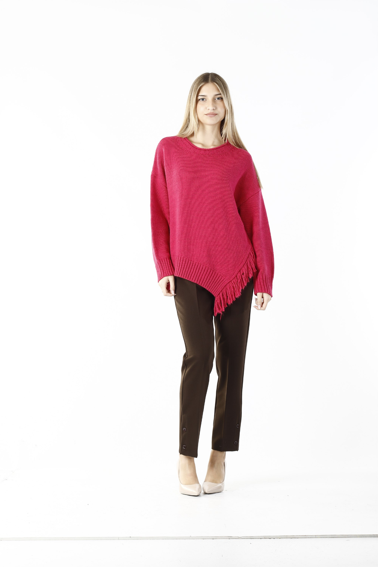 • maglia girocollo con frange laterali